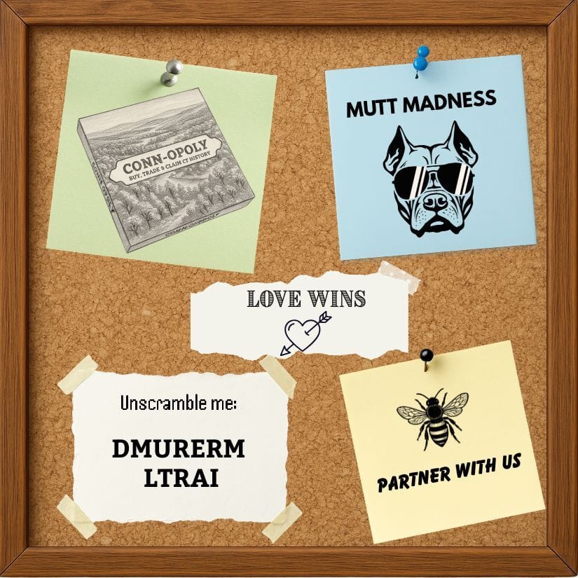 CONN-OPOLY: Connecticut in a box: inside jokes, real landmarks, and the kind of hometown nostalgia that turns “one round” into “wait, it’s midnight?” Grab a copy for your next get-together or gift it to a proud Nutmegger, because nothing bonds people faster than arguing over Hartford traffic and who really owns the shoreline. Get yours now.